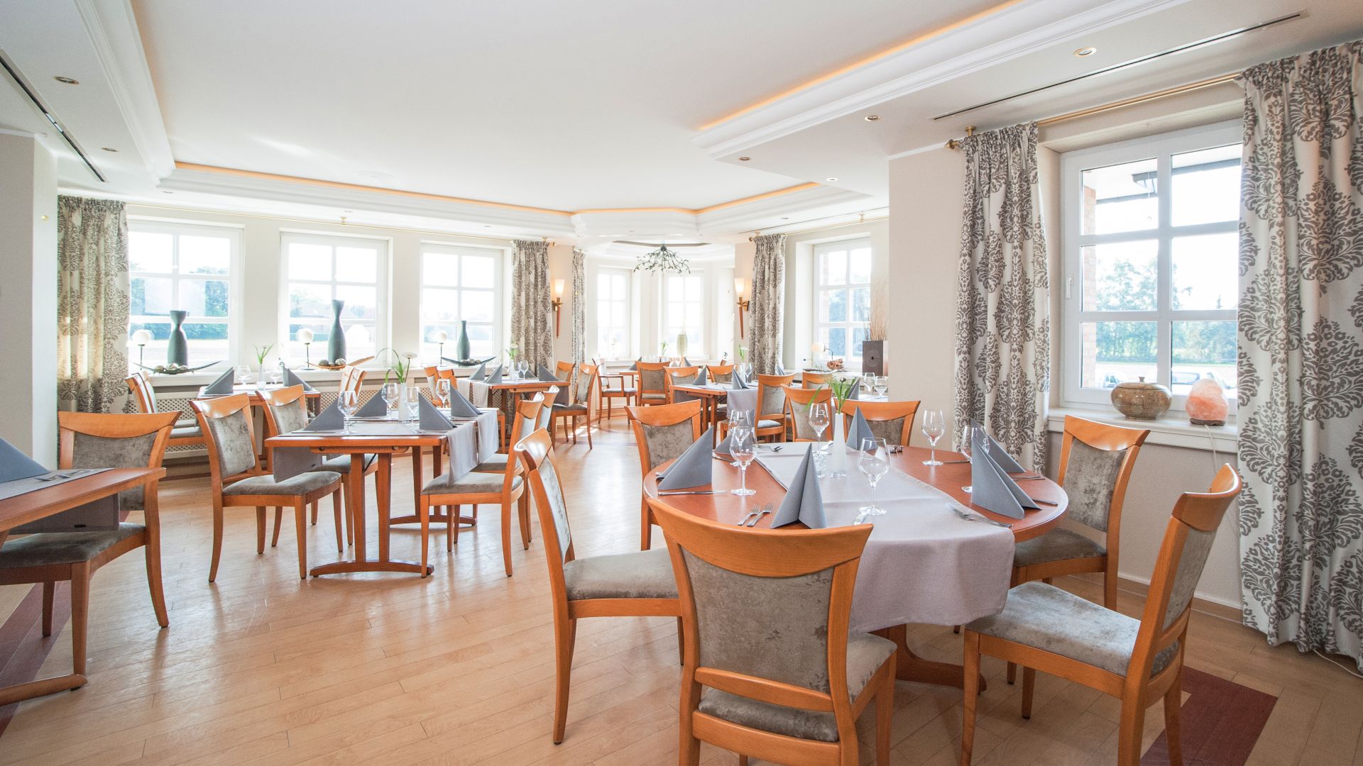 19 hochwertig eingerichtete Hotelzimmer, ein stilvolles Restaurant, ein Festsaal mit Flair bis zu einer Kapazität von 180 Personen und ein Tagungsbereich mit einer Vielzahl multifunktioneller Räume und wohldurchdachter technischer Ausstattung.
